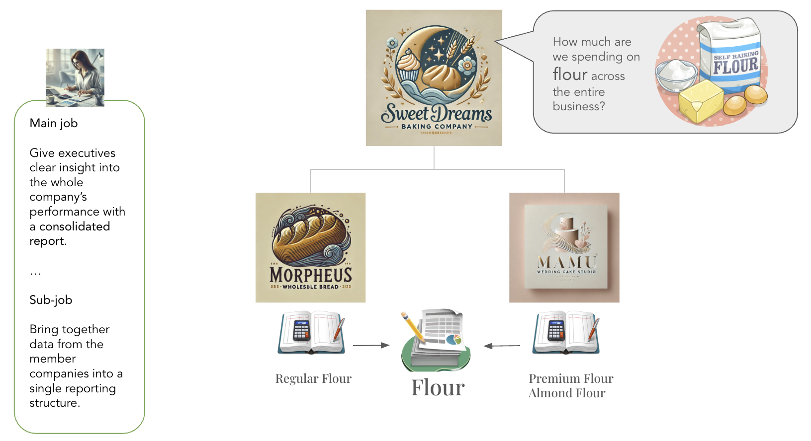 Executives want to see financial performance across the whole business. The problem is, an enterprise business usually consists of multiple companies, each with their own accounting books and ways of organizing data. This creates headaches for accountants, who have to put together a single, consolidated report.